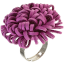 Bague en forme de fleur taille unique sur un support en métal argenté.